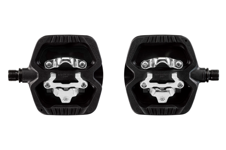 The GEO TREKKING GRIP are commuter pedals. One side an SPD-compatible mechanism, on the other a flat pedal with an elastomer grip for safe riding in any conditions. No need to change pedals when you are heading out for a faster ride: the GEO TREKKING GRIP can do everything."