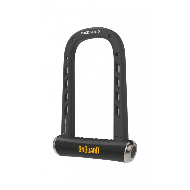 Introducing the OnGuard RockSolid, the pinnacle of bike lock innovation. Designed with cutting-edge materials and advanced engineering, this revolutionary lock stands as an impenetrable fortress against even the most determined thieves armed with angle grinders. Crafted from a proprietary blend of ultra high-strength materials and reinforced with a multi-layered defence system, the OnGuard RockSolid is virtually impervious to the cutting force of angle grinders. Its intricate structure is engineered to resist cutting, rendering any attempts to breach its fortified exterior futile. With each component meticulously designed and rigorously tested, the OnGuard RockSolid boasts an unrivalled resistance to brute force attacks. Its hardened, shrouded shackle is impervious to an angle grinder, defying even the most aggressive cutting attempts. The OnGuard RockSolid not only provides unbeatable security but also offers a seamless user experience. Its ergonomic design ensures easy handling, making it the lightest angle grinder resistant lock in the market.
