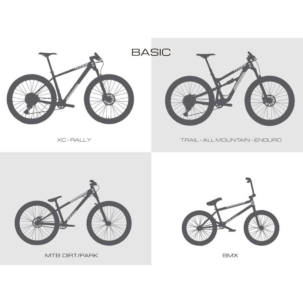 9 parts for a universal protection system: 1 big part for the down tube; 5 arrow parts for extending the down tube protection or for the chainstay or for top tube; 3 circles for cable wear protection.