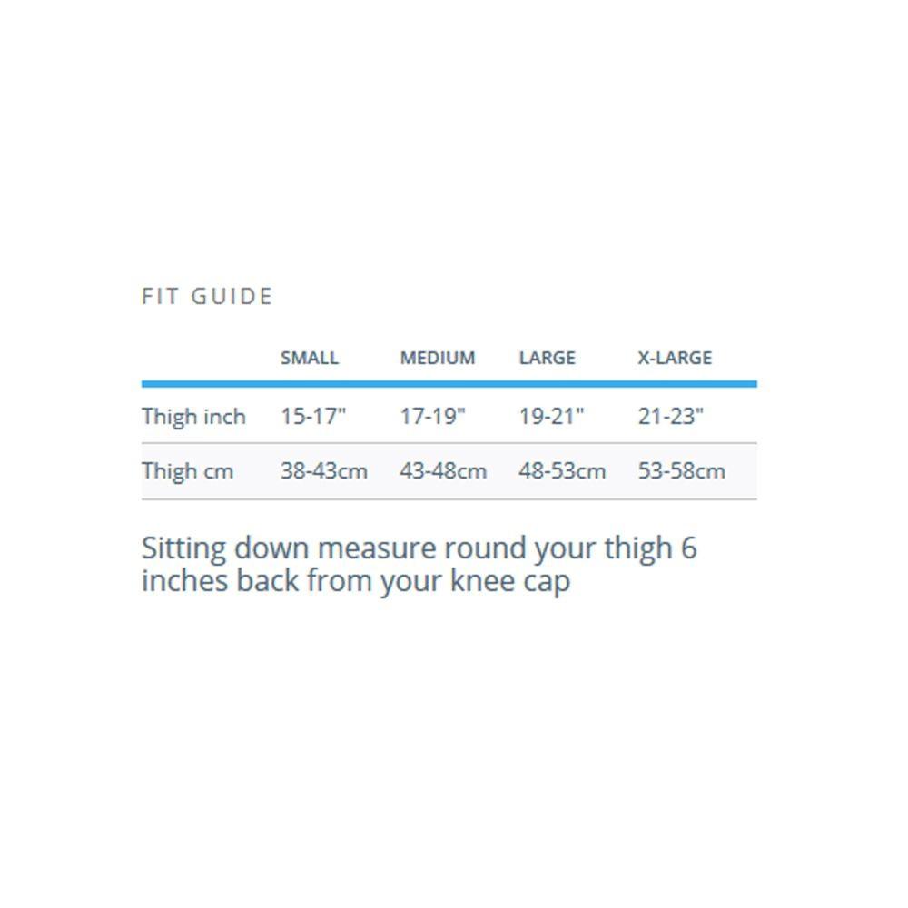 Our Centre Strap system imparts pressure evenly across the thigh via two straps meaning less tension is needed to keep the pads in place when combined with the wide internal silicone strip.