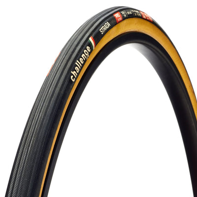 The Strada is Challenge's go to tyre for long days on the road. This all-condition tyre combines a round profile that takes the sting out of rough pavement with a construction that provides maximum control and low rolling resistance.