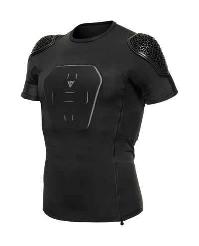 The Dainese Rival family of protectors is designed to offer maximum resistance and protection, and the unique freedom to ride without constraints. The Dainese Rival Pro Tee protective jersey offers the highest level of back protection in a comfortable, lightweight garment that allows for maximum freedom of movement and rideability. Maximum safety is guaranteed by the Auxagon back protector. Inspired by the geometries of auxetic materials found in nature, it offers level 2 protection against the most violent impacts, while ensuring ample freedom of movement, superior lightness and ventilation. The auxetic protectors also extend to the shoulders, chest and false ribs for coverage of the most impact-prone areas. The jersey is virtually imperceptible and entirely concealed under an outfit due to its form-fitting shape and the minimalist design of its protectors. The long cut allows it to be worn comfortably inside pants or shorts, ensuring maximum stability of the protection during every phase of activity.Simple and immediate to wear, a practical side zipper allows the wearer to get it on and off with real ease, even when sweaty after a phase of intense activity.