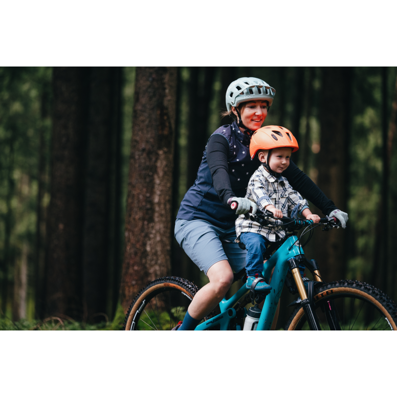 The Shotgun Pro is the ultimate child seat for MTB families. It 's lightning fast to attach and remove, has zero frame contact, and is adjustable to fit electric and regular mountain bikes.