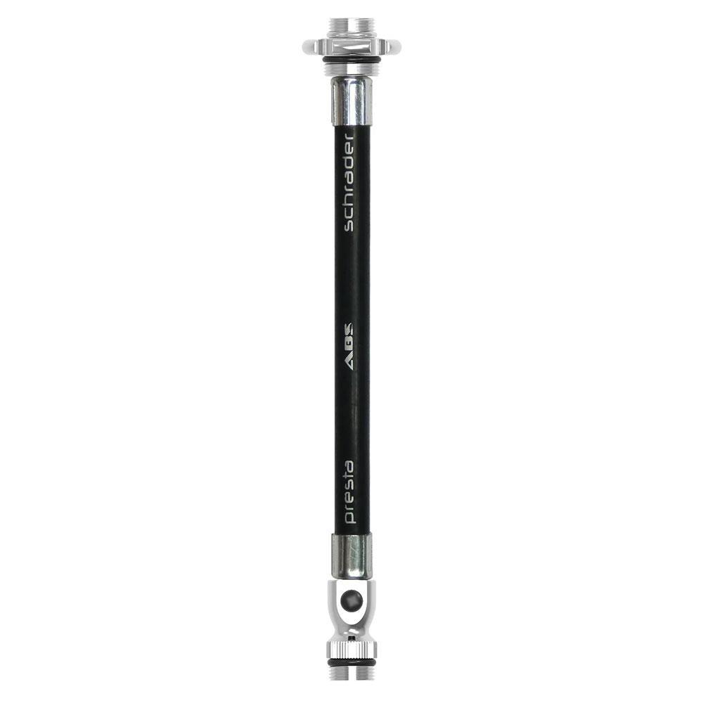 Equipped with our ABS Flex hose; Presta and Schrader valve compatible. Includes lightweight composite matrix frame mount.