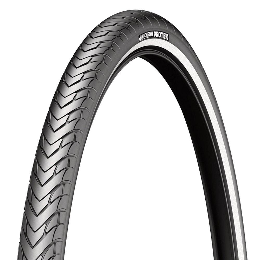 The Michelin Protek tyre features a wire bead and tough 1mm puncture resistant layer under the tread. The tread pattern makes this tyre particularly well-suited for urban and commuter use. Featuring a Silicium compound tread for low rolling resistance and a reflective strip on the sidewalls for added low light visibility. This tyre is also fully e-bike rated up to 25 km/h.