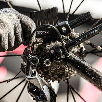 The Muc-Off Claw Brush boasts a high quality construction with three brush heads that feature tough nylon bristles and an integral scraper for mud de-clogging. It's perfect for cleaning your bike's chain, cassette, mech and sprockets.