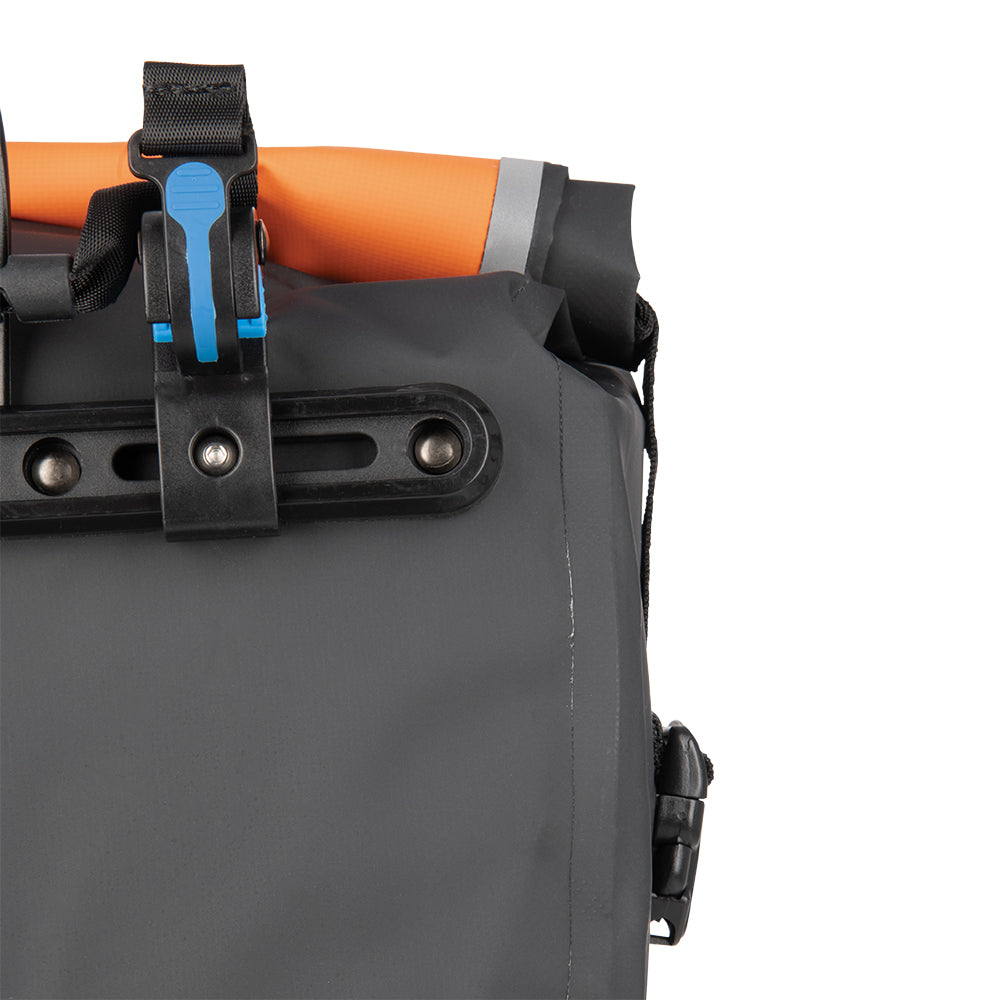 This quick-release pannier will greatly increase the amount of gear you can pack on your bike. Its waterproof construction means contents are kept safe in any weather and the roll-top design with compression straps allows you to adjust its size to fit exactly what you need to carry.
