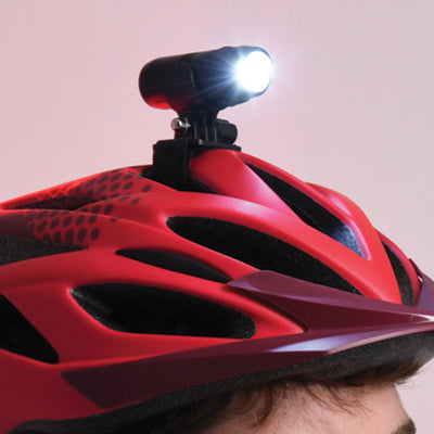 Comprising a 50 lumen front light and 15 lumen COB rear light in a single alloy body, this compact lightweight helmet mounted light packs a big punch. Front and rear lights are independently controlled and the universal mount will fit any cycle helmet.