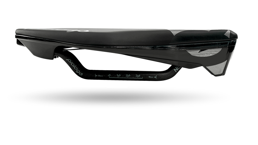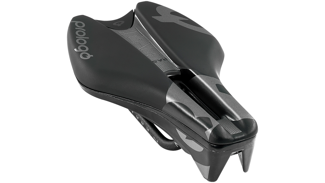 Developed in the wind tunnel, this saddle is laced with technological features and has a unique design. The nose is 4.5cm shorter than a normal saddle. An integrated elastomer absorbs vibrations and shocks. It's the perfect saddle to exert maximum power in aerodynamic positions over a long period of time.
