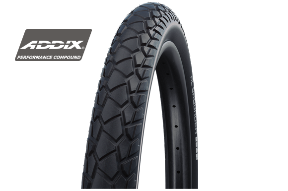 THE NEW CROSSOVER TYRE FOR E-SUV AND TOURING BIKES offers true all-round capabilities for use on roads, dirt track and easy trails. With its unique tread design, it runs quietly and quickly on asphalt while providing sufficient stability on unpaved surfaces. Equipped with the DOUBLE DEFENSE construction and Addix Compound, Al Grounder achieves a high puncture resistance and an optimal balance between low rolling resistance and sufficient grip.