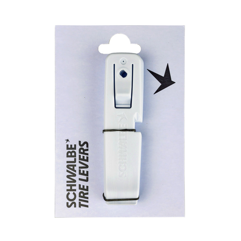 The Schwalbe tire lever is particularly helpful for difficult mounting processes. mounting processes. You can clip it onto the rim and use it to remove the already mounted area of the tire bead. The bead then no longer slips out no longer slip out while the last section is levered over the rim. is levered over the rim.