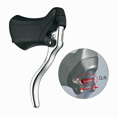 Tektro RL340 Aero forged aluminium brake levers for drop handlebars (23.8mm). Ergonomic lever design with integrated quick release mechanism. Compatible with cable actuated caliper and disc brakes. Weight 320 grams / pair. Available in Black or Silver finish with Black hood. Sold in pairs.
