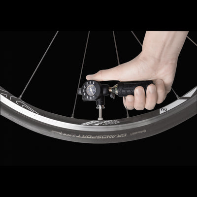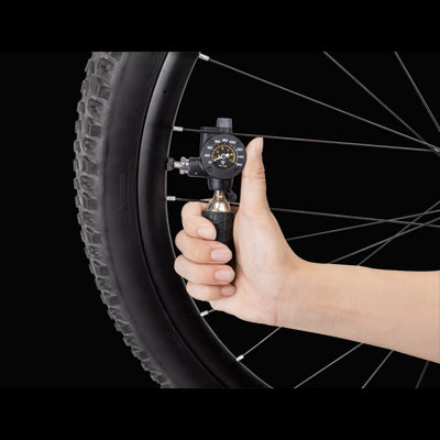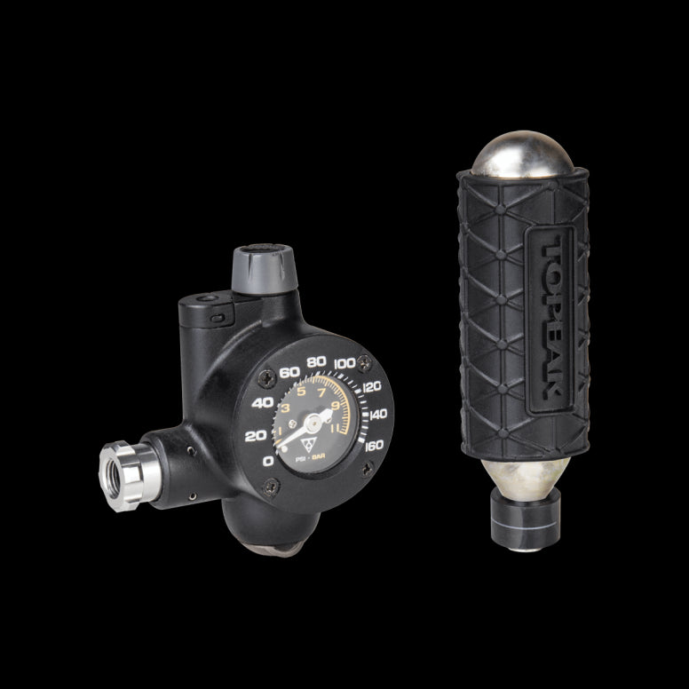 The world’s first CO2 inflator with tire gauge provides fast tyre inflation with precision pressure setting. Air flow adjuster allows the user to control the rate of inflation. Works as a standalone tyre pressure gauge.