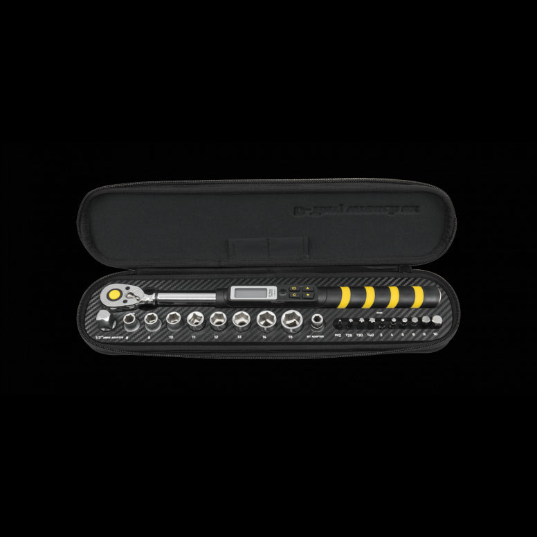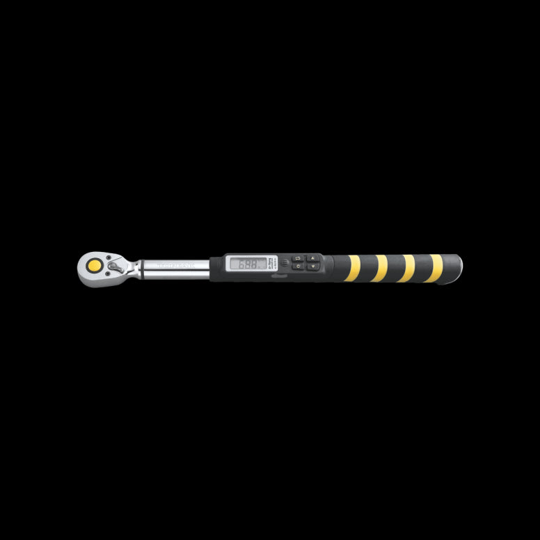Precision digital torque wrench with settable torque and audible over-tighten alarms. Digital read out is programmable in Nm/kg, Nm/cm, inch/lbs or ft/lbs.