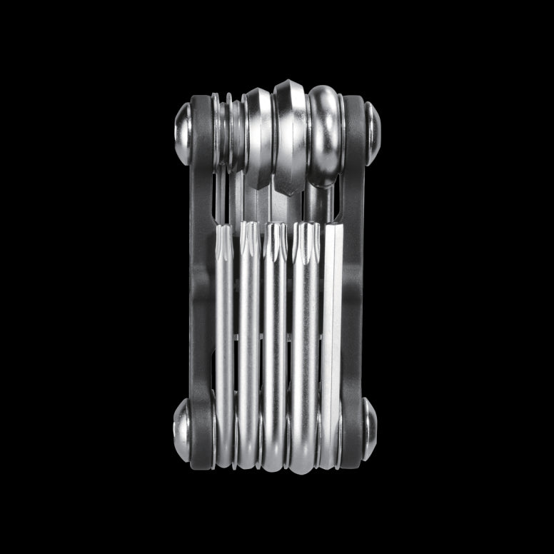 One piece, lightweight and compact folding tool. 10 pro quality hardened steel tools fold into an extruded aluminium body ideal for any cyclist.
