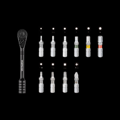Ultra compact CNC machined aluminum ratchet tool kit with 10 bits for daily maintenance.