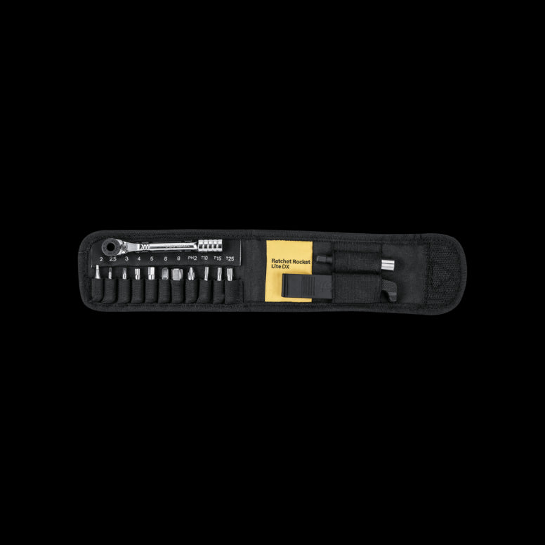 All the speed and convenience of the original Ratchet Rocket in a tighter and lighter package. The Ratchet Rocket Lite DX features a fine tooth ratchet mechanism with reverse lever and thumb wheel for quick rotation and control in tight spots. All this repair capacity fits into a tiny nylon case.