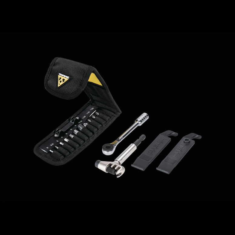 The latest addition to the Ratchet Rocket range. Includes a micro ratchet along with the most popular hardened steel tool bits and a compact chain tool allowing you to make adjustments or repair your bike while out cycling.