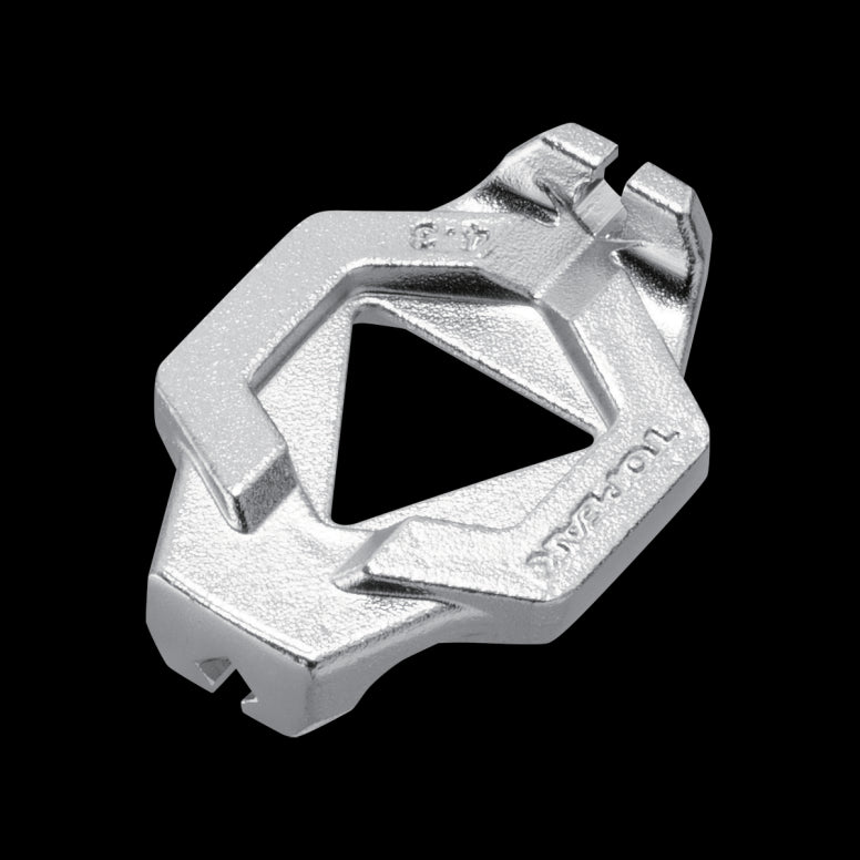 Low Profile high strength steel spoke wrench easily works on different nipples to adjust spoke tension and true wheelset. Each wrench works on two different sizes of spoke nipples